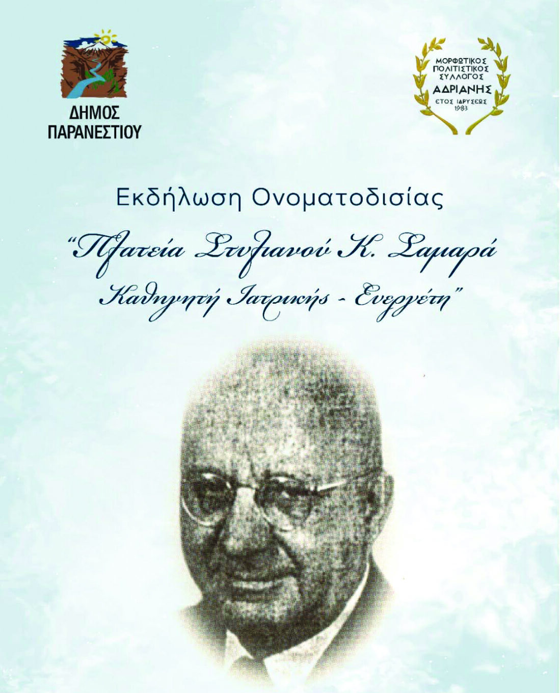Εκδήλωση ονοματοδοσίας της πλατείας Αδριανής σε «Πλατεία Στυλιανού Κ. Σαμαρά»» Το EIDISIS24 συγκεντρώνει ειδήσεις από έγκυρες και αξιόπιστες πηγές για την καλύτερη ενημέρωσή σας. Για να διαβάσετε την πλήρη είδηση,