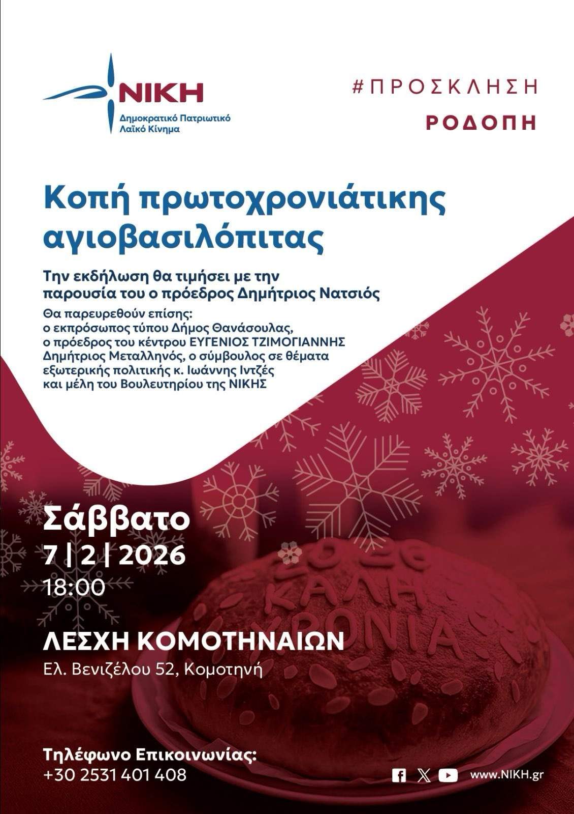 ΝΙΚΗ Ροδόπης: Κοπή πίτας στην Κομοτηνή με Δημήτριο Νατσιό Το EIDISIS24 συγκεντρώνει ειδήσεις από έγκυρες και αξιόπιστες πηγές για την καλύτερη ενημέρωσή σας. Για να διαβάσετε την πλήρη είδηση, πατήστε