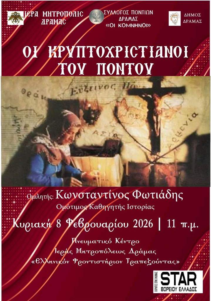 Εκδήλωση με θέμα «Οι Κρυπτοχριστιανοί του Πόντου» Το EIDISIS24 συγκεντρώνει ειδήσεις από έγκυρες και αξιόπιστες πηγές για την καλύτερη ενημέρωσή σας. Για να διαβάσετε την πλήρη είδηση, πατήστε εδω και
