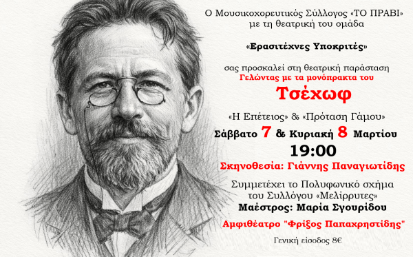 Αμφιθέατρο «Φρίξος Παπαχρηστίδης: σήμερα και αύριο δύο μονόπρακτα του Αντόν Τσέχωφ