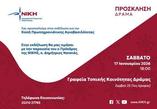 Νίκη Δράμας: Κοπή βασιλόπιτας παρουσία του Προέδρου Δ. Νατσιού Το EIDISIS24 συγκεντρώνει ειδήσεις από έγκυρες και αξιόπιστες πηγές για την καλύτερη ενημέρωσή σας. Για να διαβάσετε την πλήρη είδηση, πατήστε