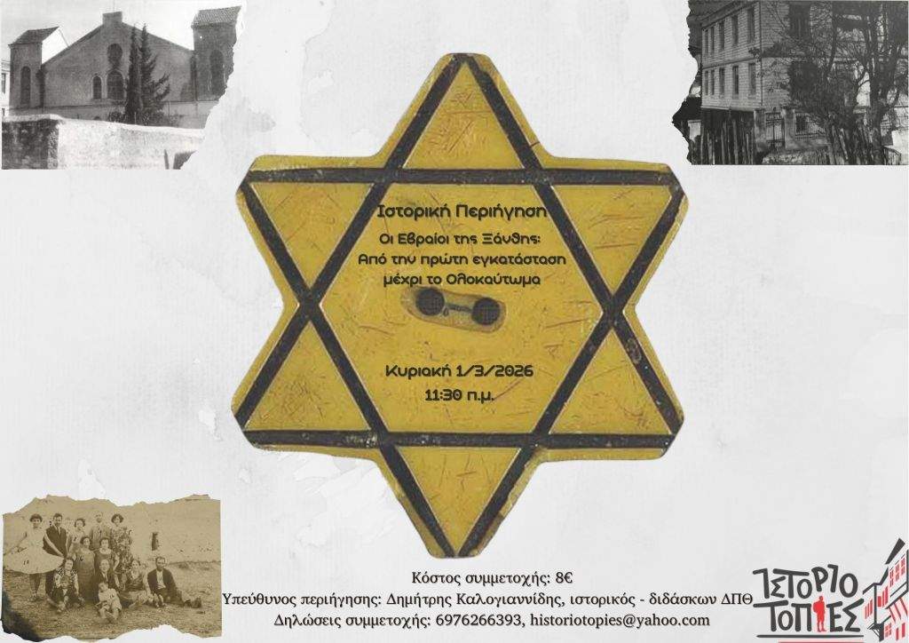 Ιστοριοτοπίες: Ιστορική περιήγηση με θέμα την Εβραϊκή Κοινότητα της Ξάνθης την Κυριακή 1 Μαρτίου Το EIDISIS24 συγκεντρώνει ειδήσεις από έγκυρες και αξιόπιστες πηγές για την καλύτερη ενημέρωσή σας. Για να