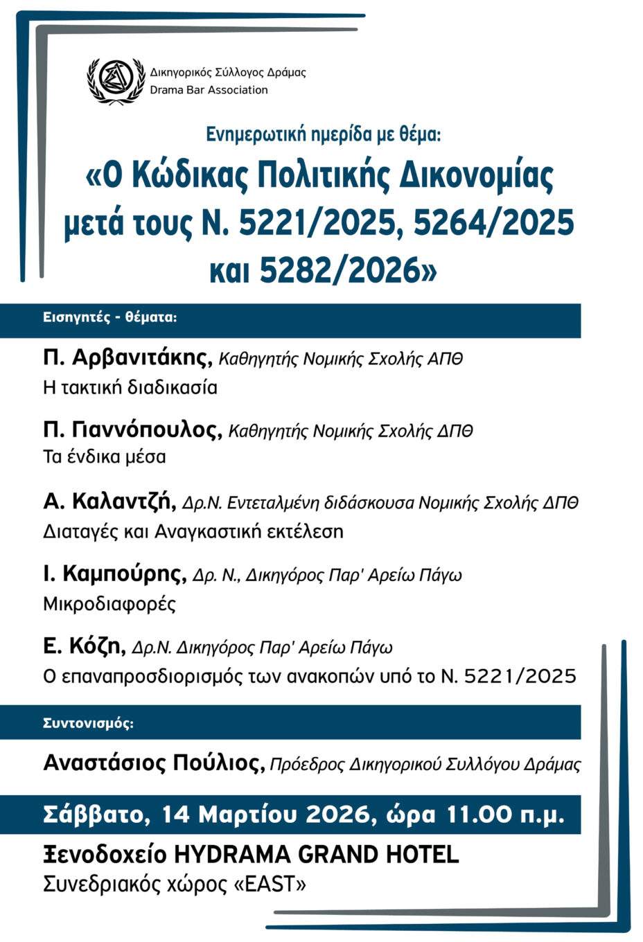 Δικηγορικός Σύλλογος Δράμας: Ημερίδα για τις αλλαγές στον Κώδικα Πολιτικής Δικονομίας Το EIDISIS24 συγκεντρώνει ειδήσεις από έγκυρες και αξιόπιστες πηγές για την καλύτερη ενημέρωσή σας. Για να διαβάσετε την πλήρη