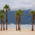 Κεραμωτή: φοίνικες, άμμος, και στο βάθος η συννεφιασμένη Θάσος